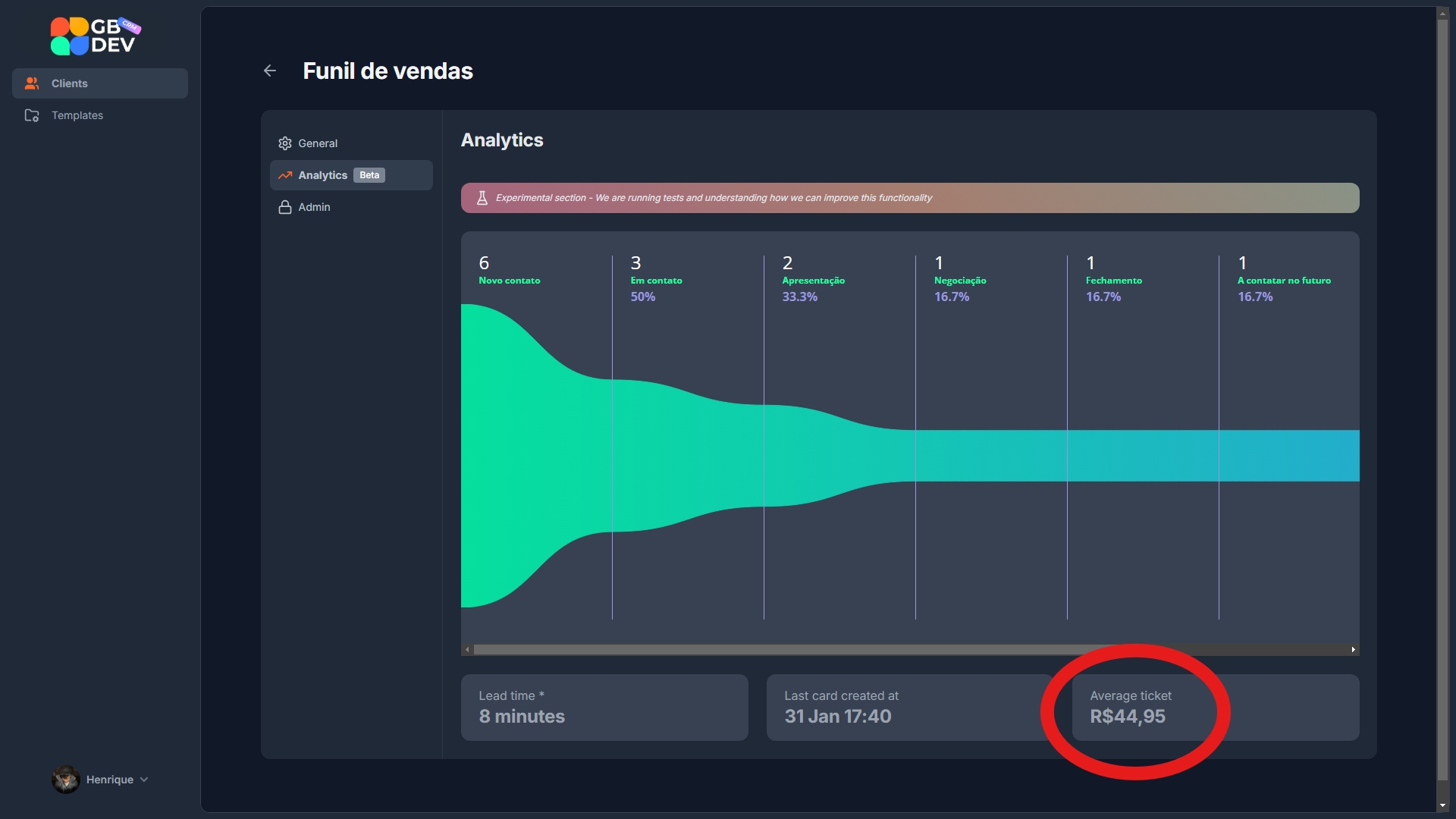 Acompanhe cada etapa do seu processo comercial no Kanban.